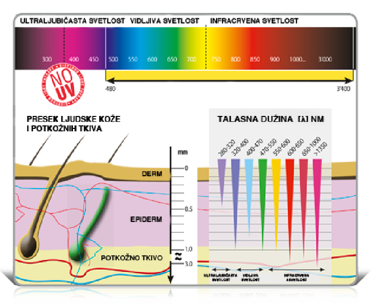 Zraci različitih talasnih dužina prodiru u kožu do različte dubine i podstiče aktivaciju ćelija